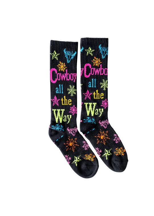 Under the creative vision of head cowgirl Lorinda Van Newkirk, Lucky Chuck® Performance Socks deliver on both style and functionality. These riding essentials are tall enough to protect your calves, stay up all day, and never cut off circulation. Plus, they soften with every wash without wearing out—giving you even more chances to rock your lucky socks every day.